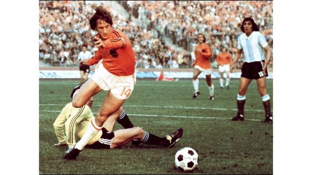 Johan Cruyff ghi bàn vào lưới Argentina vào ngày 26/6/1974 tại World Cup 1974, trong trận Hà Lan thắng Argentina với tỷ số 4-0.