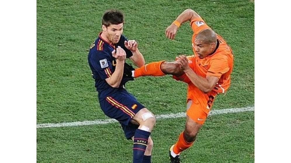 Trận chung kết giữa Tây Ban Nha và Hà Lan có lẽ là ký ức không thể nào quên đối với những ai theo dõi Xabi Alonso World Cup 2010. Một trong những hình ảnh ám ảnh nhất chính là cú "vô lê" vào thẳng ngực Alonso của tiền vệ thép Nigel de Jong bên phía đối thủ.